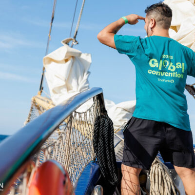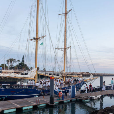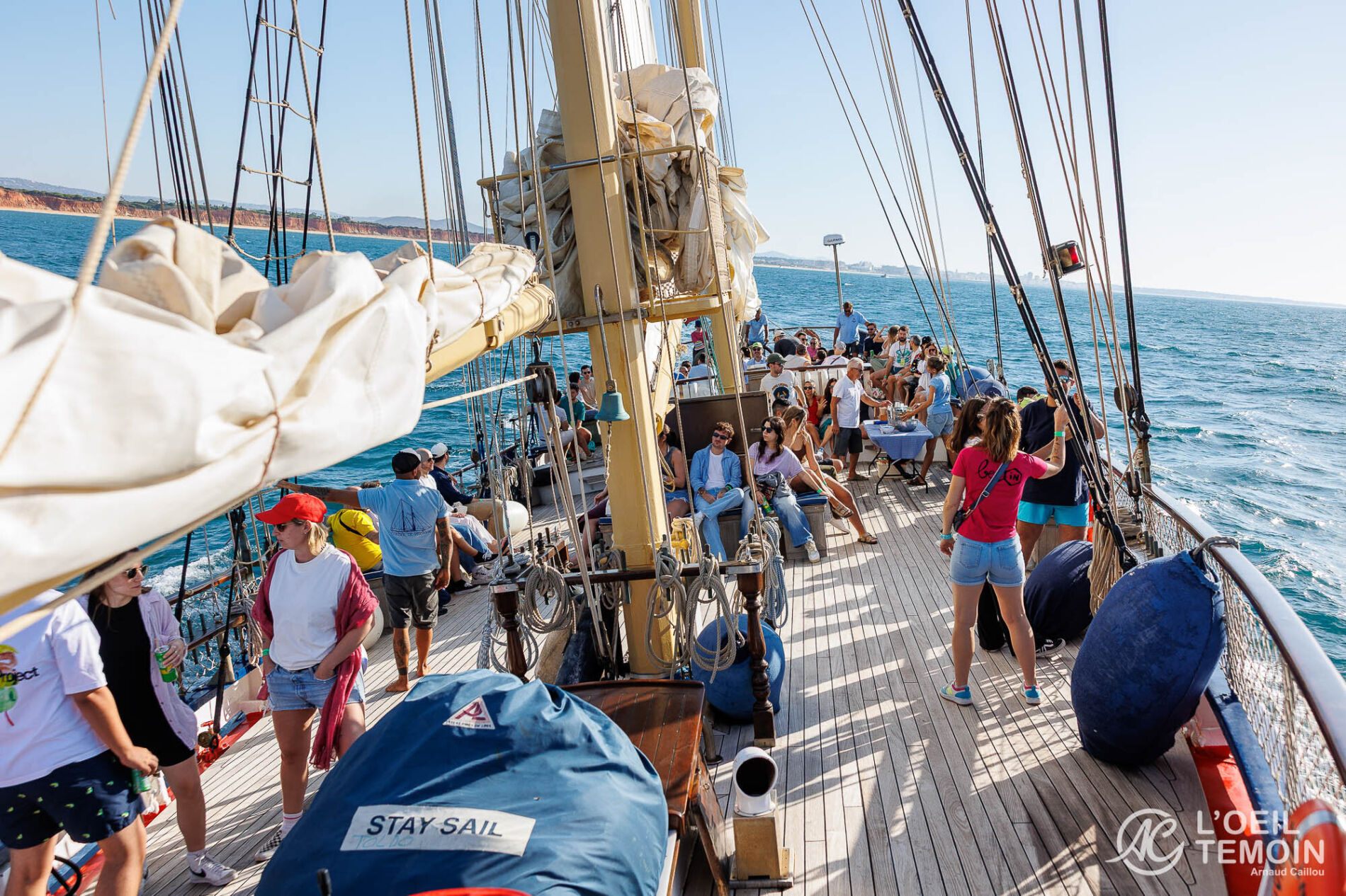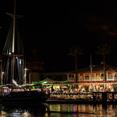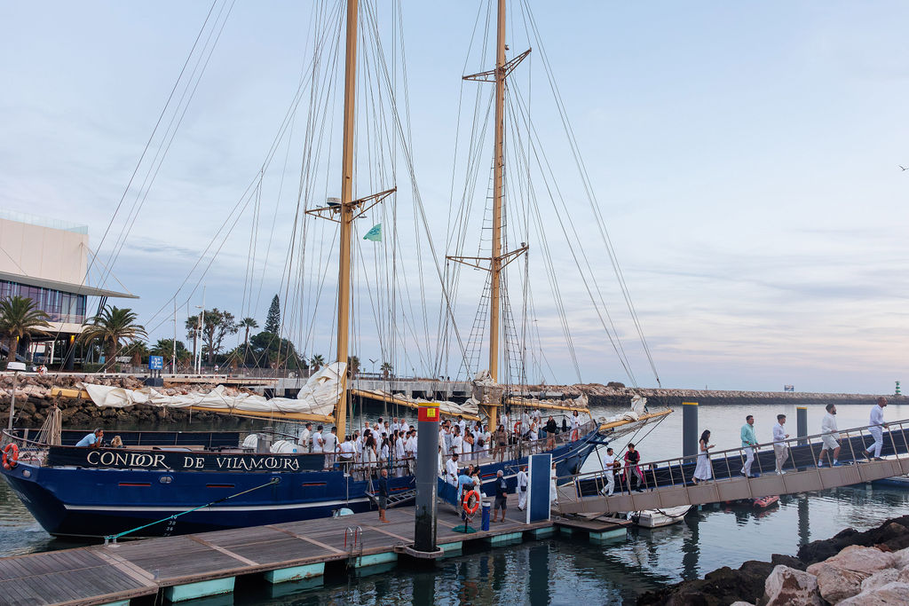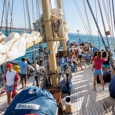 Pour clôturer cette journée riche, les équipes traversent la marina sous le soleil couchant et embarquent à bord d’un voilier centenaire.